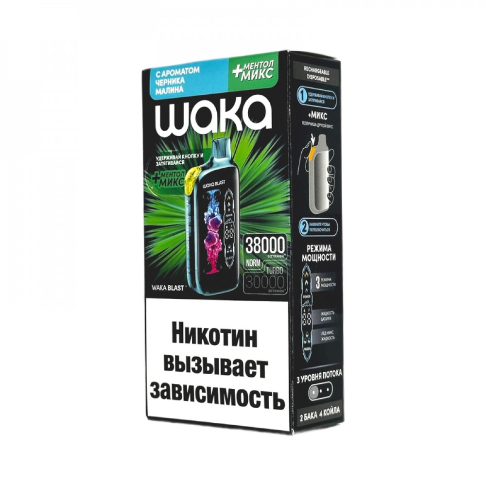 WAKA BLAST 38000 Hard - Черника малина + ментол микс - купить в Курчатове